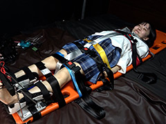 拘束台での仰向け固定から足枷で逃げ場を奪われ、段階的に崩れていく様子が魅力です。